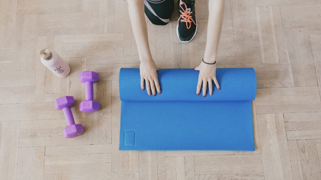 Having a specific spot for your workouts makes a huge difference in sticking to your routine. It doesn’t need to be fancy, just somewhere you can roll out your mat and return to again and again.